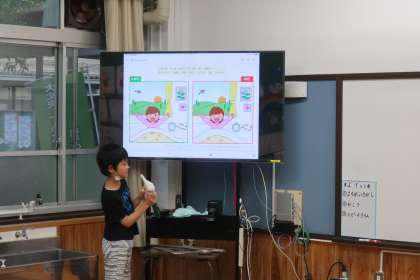 左右の絵の違いに素早く気付き、見つけ出した点をみんなに分かりやすく伝えることができました。