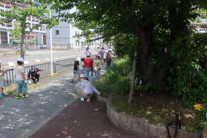 朝会後、たてわりグループで校内や地域のごみ拾いをしたり、掃除をしたりしました。