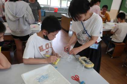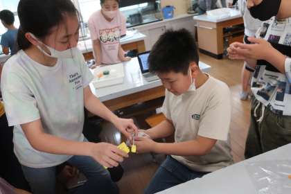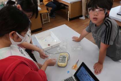 石灰水を使ったり、実験器具を活用して具体的な数値を比較したりして、協力して実験を進めていました。