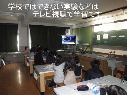 理科の「電気の性質」のまとめに入っています。これまでいろいろな実験をして,楽しく理科学習をしてきましたが,学校ではできない大がかりな実験などは,テレビ(DVD)を視聴して学習しています。大きな画面に映し出され,よりリアルに視聴するとができ,子どもたちの興味・関心をかき立てます。