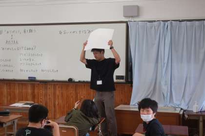 言い逃しそうな「ありがとう」トップ3をグループで考え、日常生活で当たり前のように言葉にしている感謝の気持ちの意味について、考えを深めることができました。