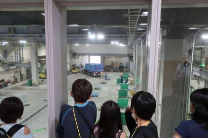 見学中もたくさんのパッカー車が、大量のごみを載せて集まっていました。