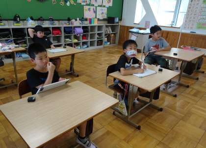 練習問題のあとは、ひとりひとりがクイズを楽しそうに考えていました。