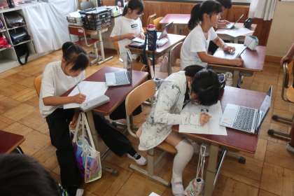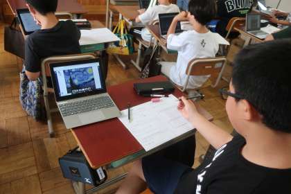 その絵からわかることや、絵から受けた印象等々、ロイロノートを活用して交流していました。