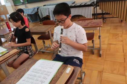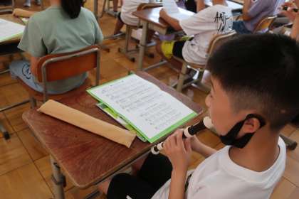 歌唱のあと、リコーダー「ハロー サミング」の演奏会!