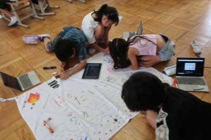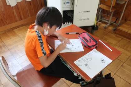 クラス旗の作成や、しおりのイラストも丁寧に仕上げています。