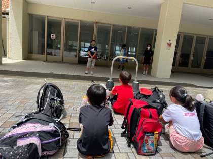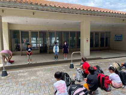 子どもたちの元気なあいさつで、宿舎での生活がスタートしました。