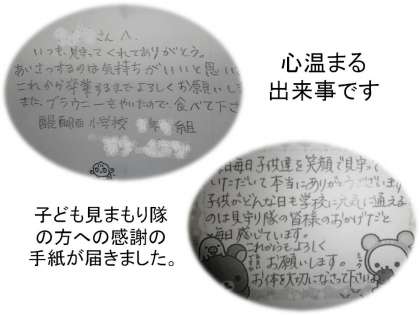 子ども見まもり隊の方は,とても喜んでおられました。とても心温まる出来事でした。