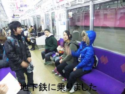 地下鉄内では,おとしよりに席を譲ったり,出入口で場所をよけたりしてマナー良く活動しています。