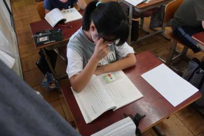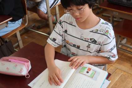 登場人物の心情の変化を中心に、場面の情景をイメージしながら、担任の音読に耳を傾けていました。