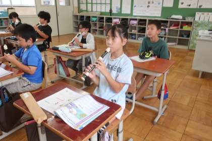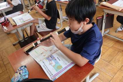 音楽科の学習です。曲「陽気な船長」のリコーダー演奏をしました。