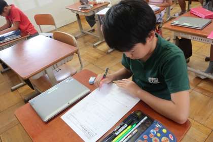 テスト前に、タブレットを活用したり、プリントを活用したりして、自分のペースや課題に合ったかたちで「長さ」の復習に取り組んでいました。