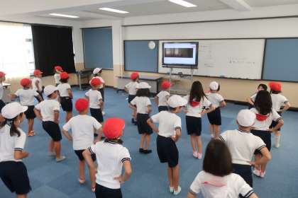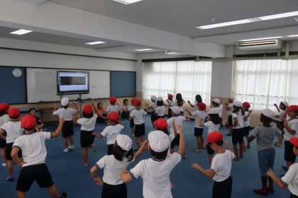 今日は、曲に合わせてダンスの練習。1年生のよいモデルになるように、指の先まで気をつけながら、元気に踊っていました。