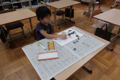 栗やススキ、月、うさぎ、さんま等々、『9月』をテーマに思い思いに絵を描きました。