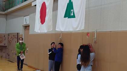 同じ日に宿泊している中学校2校と大学生の部活動の1チームと合同で行いました。