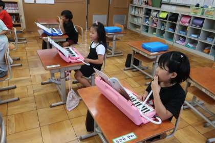 今日は鍵盤ハーモニカの練習。