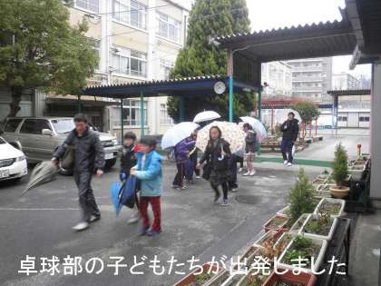 柔道部に続いて,8時前に卓球部の子どもたちが,会場の春日野小学校へ出発しました。健闘を祈ります。