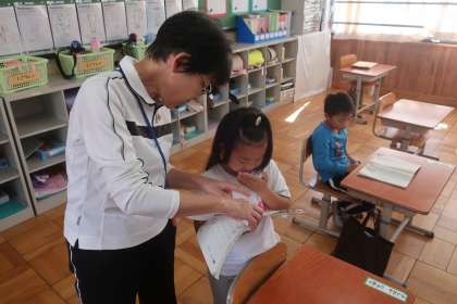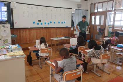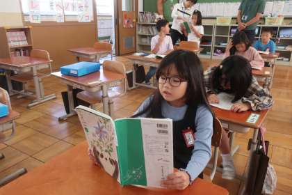 読む姿勢に気をつけながらリズムよく音読する子どもたち。