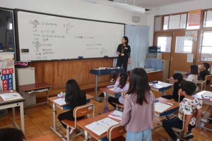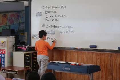 子どもたちは問題をじっくり読み、かけ算・たし算の両方の式を立てることができました。