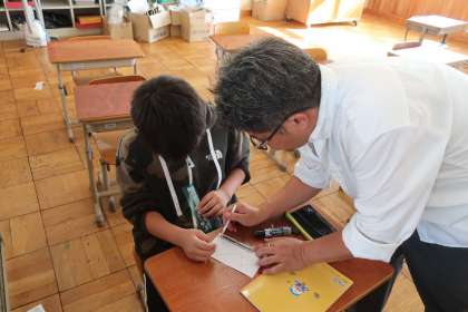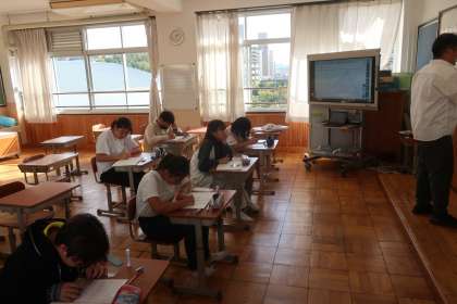 対応する辺の長さの比や対応する角の大きさが等しいかどうか等々、これまでの学習を思い出しながら取り組んでいました。