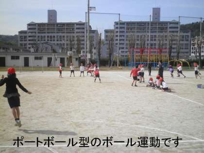 寒い時期はサッカー型のボール運動でしたが,今日はポートボール型のパスゲームで楽しみました。