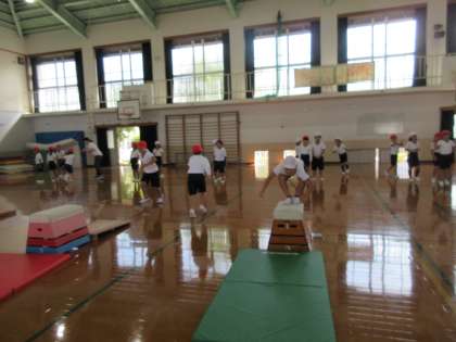 2年生は、体育の学習で「とびばこあそび」を頑張っています。