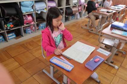 九九がいくつずつ増えていくのか、ノートに図や絵をかきながらじっくり考えていました。