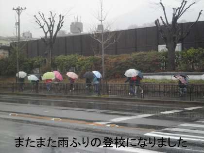 2日前の登校時間に雨が降りましたが,今朝も8時前から雨が降りはじめ,集団登校時間には,ほん降りになりました。最近の天気予報は,100%当たるようになりましたね。