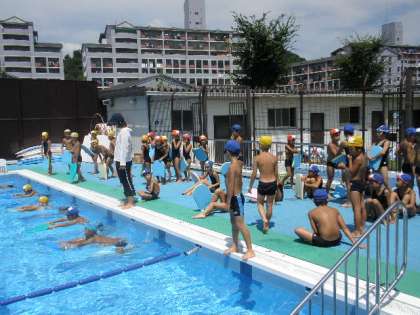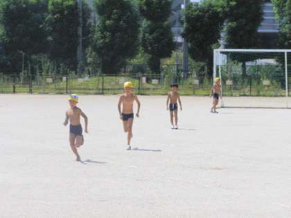 今日で夏休みのプール開放は終わります。開始前から待ち切れずに,水着に着替え運動場を走り回っていました。最後のプールに低学年は60人以上参加してくれました。