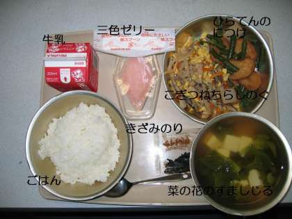 「ちらしずしのぐ」「ひらてんのにつけ」「きざみのり」