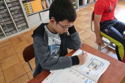 どのくらい手伝いをしているのか、音声を何回も聞きなおしながらテキストの問題にチャレンジしていました。