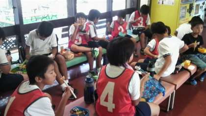 第一試合に勝ち,お弁当タイムです。昼からの試合の作戦を立てています。