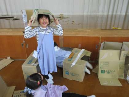 2年生 段ボールに入ってみると!? 3
