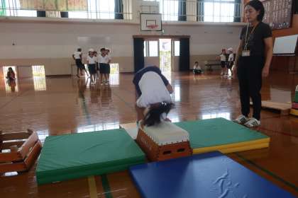 来年度以降学習する【台上前転】につながる基本的な動きを身に付けることができました。