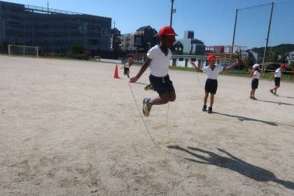 ジャンプと縄を回すタイミングを合わせながら、楽しんで跳んでいました。
