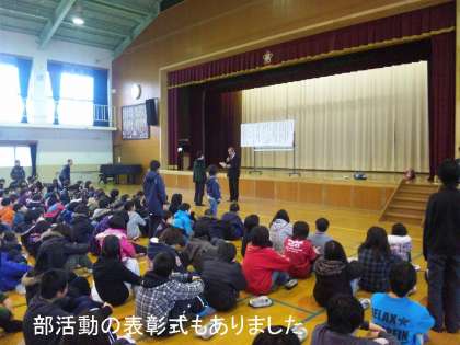 今日は,子ども見まもり隊の方々への感謝状贈呈式に続いて,3月の朝会を行いました。