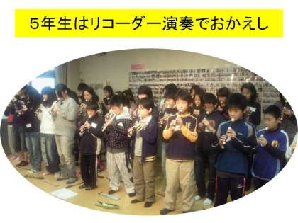 最初に,園児からの歓迎の出し物がありました。それに応えて,5年生もリコーダーを披露して,交流がはじまりました。