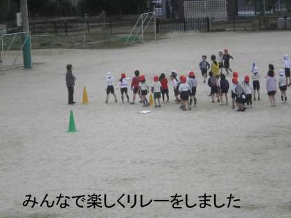 体育の時間に「リレー」をしました。3つの組に分けての競走です。