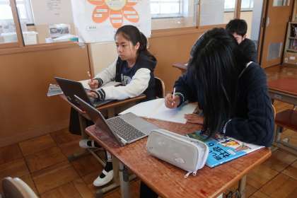 2枚の絵にある建物や人々の様子から、江戸時代と明治時代の違いについてクラスで話し合いました。