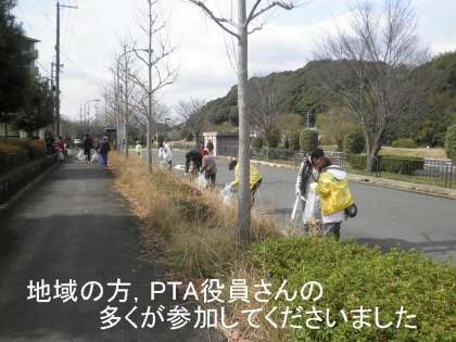 10時に本校に地域の方,PTA役員さん,そして,先生たちが集合し,ゴミ袋と火ばさみを持って,栗陵中学校まで清掃活動をしました。