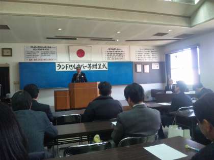 午後3時より,山科警察署の会議室で新1年生の子どもたちに配るランドセルカバー等の贈呈式が行われました。