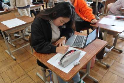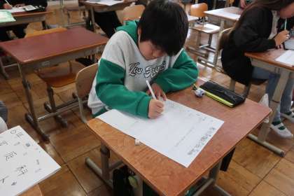 どの教科でも自分の考えをしっかり発信することができたか、単元一つ一つを思い出しながら、丁寧に自己評価していました。