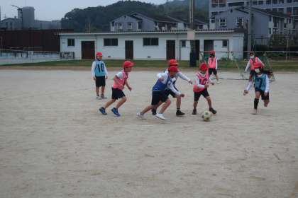 パスやドリブル、シュートなど、チームごとに練習の仕方を考えながら活動していました。