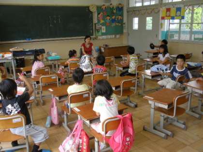 朝9時から汗をかきながらも元気に登校してくれました。お盆前でもあり,家の用事等で登校した1年生は半分弱でしたが,元気に歌を歌ったり宿題のことを先生に話したりして楽しく過ごしました。