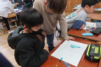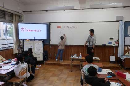 今日は、半径を活用して円内に描いた三角形がなぜ二等辺三角形なのか、グループで話し合いながら考えを深めることができました。