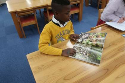 学校図書館での大好きな読書タイムです。