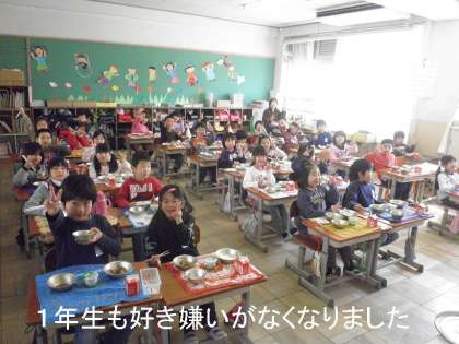 1年生の子どもたちも最後の給食は,残さずすべて食べました。2年生になっても毎日残さず食べて,大きくなります。
