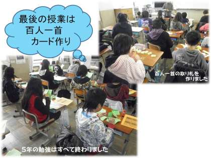 5年生は,通知表渡しを終えて,百人一首の個人カード作りをしました。