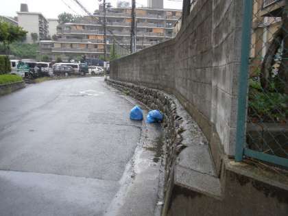 学校北側(通用門側)と東側(お墓側)の通りには,家庭ゴミや飲食物の袋や空き缶等のゴミが目立ちます。西側(外環状線側)の歩道はタバコの吸い殻の数がが半端ではありません。
