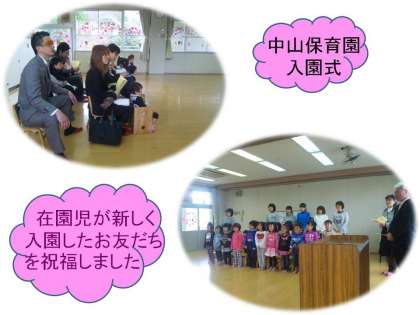 いつも仲良くしているお隣の中山保育園の入園式は,とってもアットホームな雰囲気で行われました。
